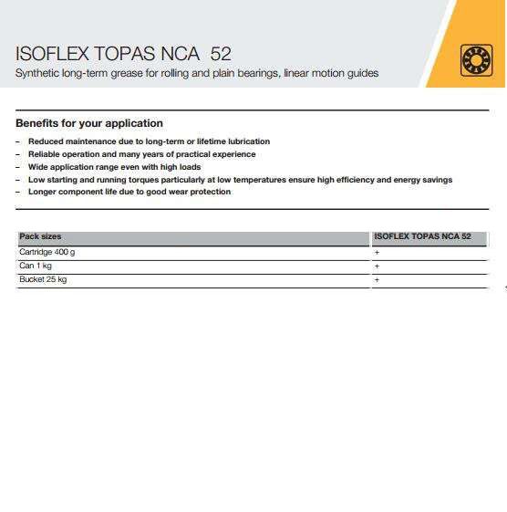 ISOFLEX TOPAS NCA52增加所包含的添加剂磨损保护。